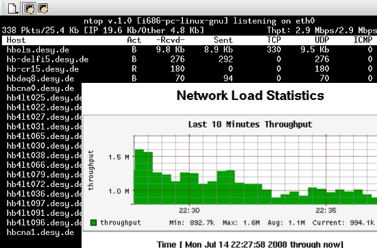 ntop is a network probe that shows in interactive mode, it displays the network status on the user’s terminal. It also has a Web mode. In Web mode, it acts as a Web server, creating a HTML dump of the network status.