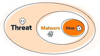 Malware is an umbrella term for any malicious software written specifically to infect and harm the host system or its user. While a computer virus is a type of malware, not all malware are computer viruses.